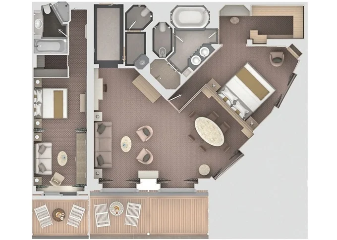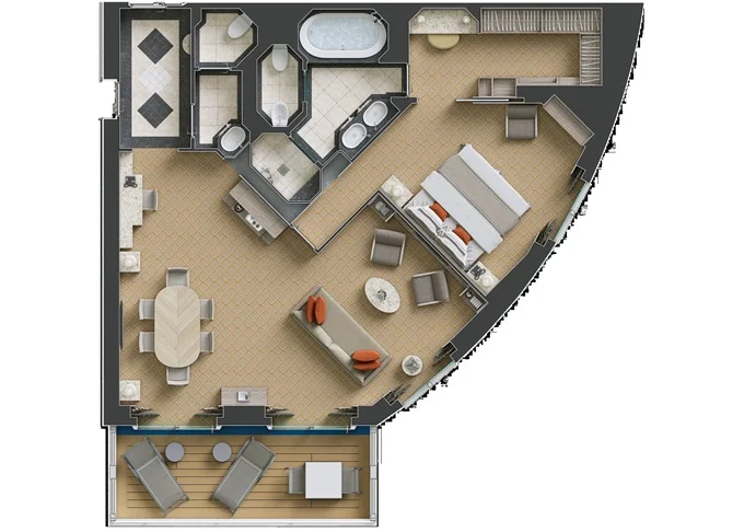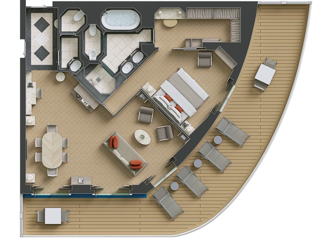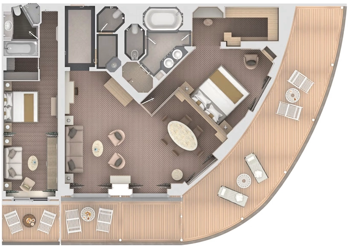 | R1 - Royal Suite 1 105 m² (vrátane balkónu). 7. paluba vpredu. Max 3 osoby. | 38 400 € 38 400 € za osobu |
