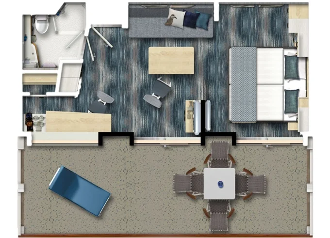 JBAO - Junior Suite s balkónom 26 m² + balkón 7 m² so stolom. . paluba. Max 4 osoby. Výhody Junior Suite. 16 596 € 4 149 € za osobu