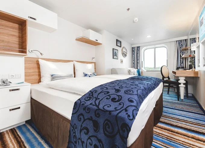 AUAO - Kajuta s oknom kat. A 17 m². Neotvárateľné okno. 3,8. paluba. Max 4 osoby. 5 704 € 5 704 € za osobu